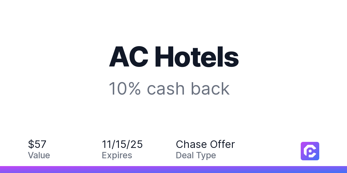 Offer expires 11/15/2025. Offer valid in-store in the US only and online at US website ac-hotels.marriott.com only. Complete payment for your stay must be made by 11/15/2025. Payment must be made directly with the merchant. Offer not valid on purchases made using third-party services. Payment must be made on or before offer expiration date. Offer valid one time only. Offer not valid at Autograph Collection Hotels properties. Offer not valid at other Marriott properties.