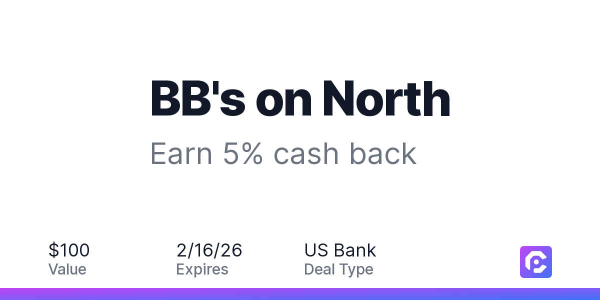 Earn 5% cash back on all of your BB's on North purchases, until a $100 cash back maximum is reached.