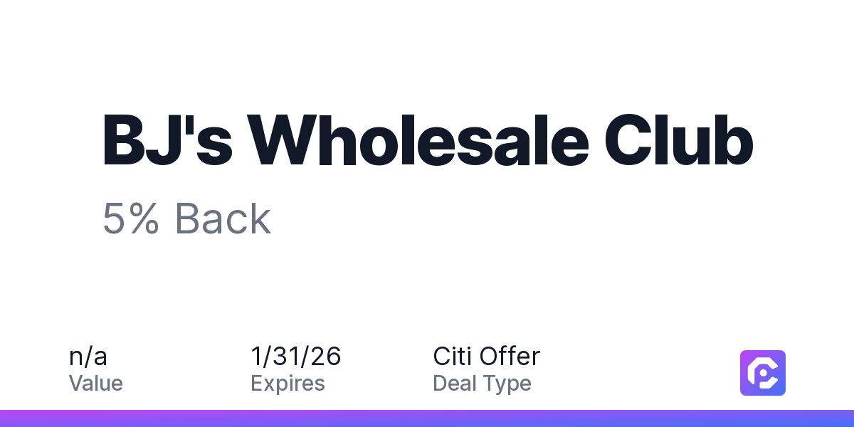 You'll be notified when there are new BJ's Wholesale Club offers available.