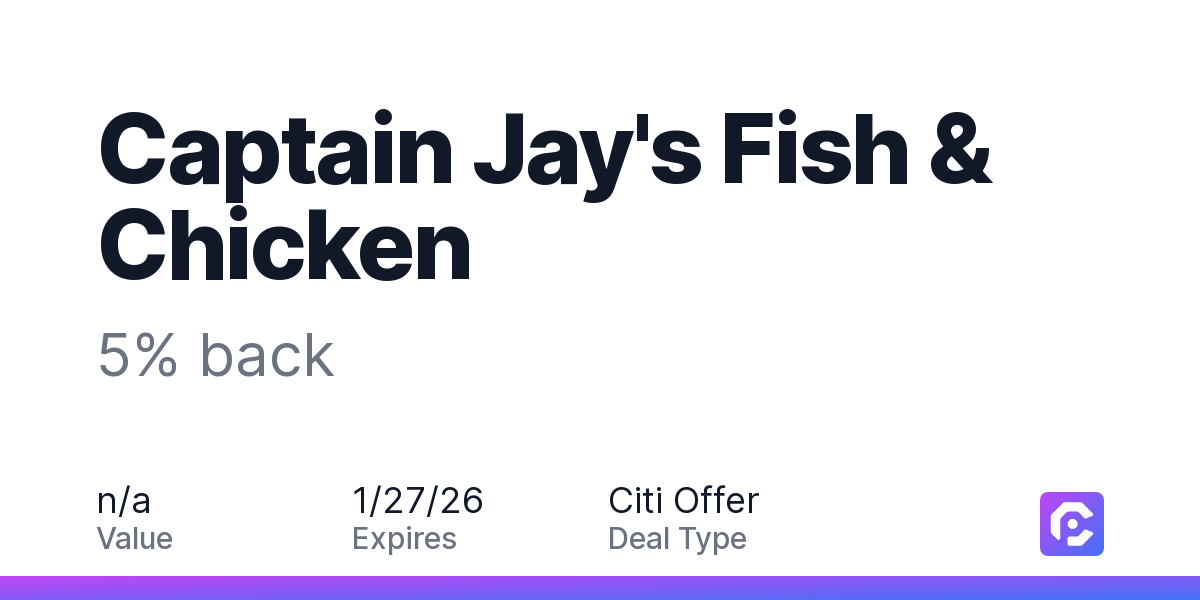 You'll be notified when there are new Captain Jay's Fish & Chicken offers available.