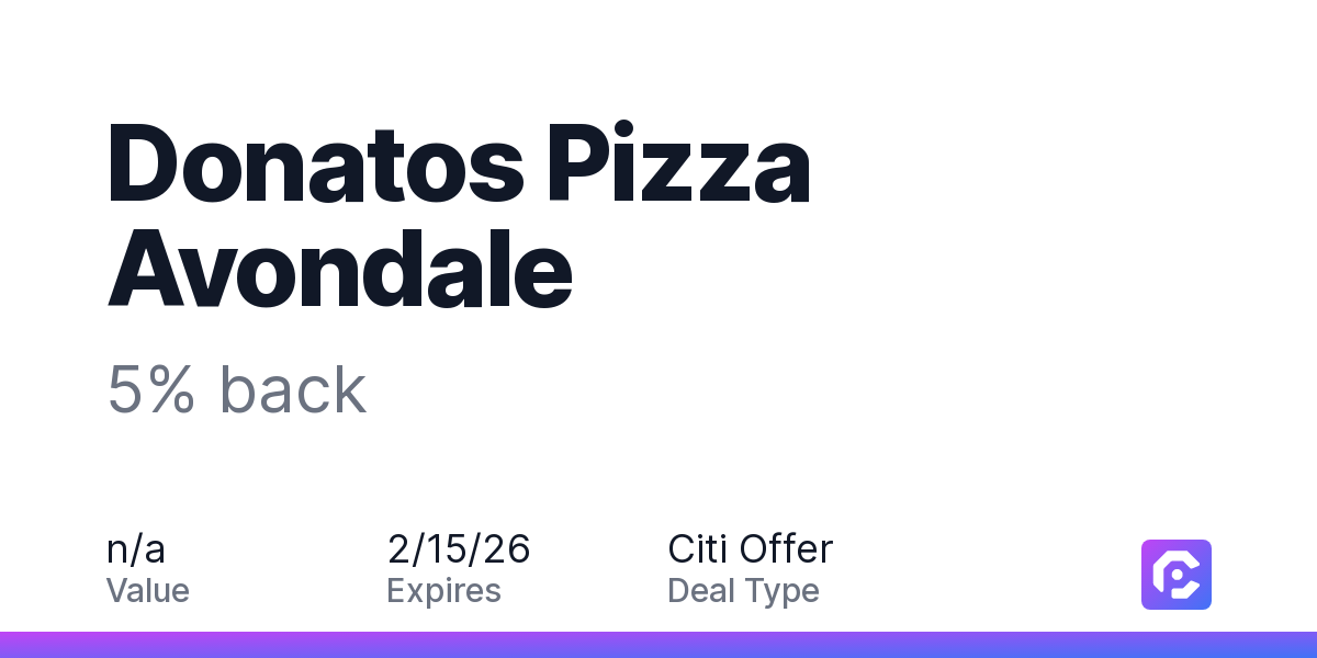 Create a CardPointers account to receive an alert for every new Donatos Pizza offer: