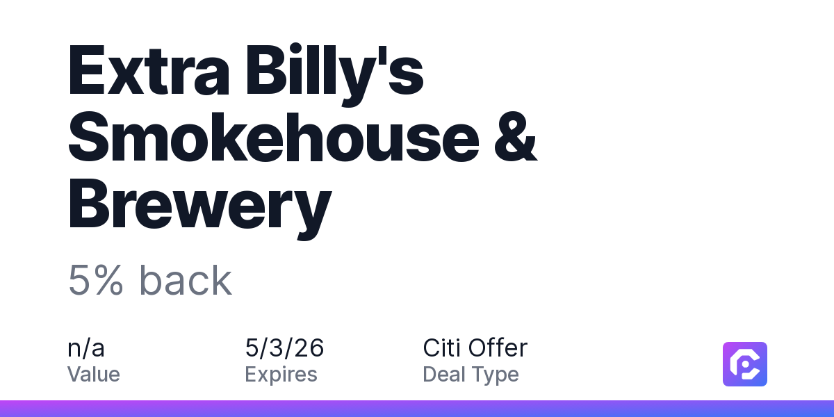 Extra Billy's Smokehouse & Brewery: 5% back