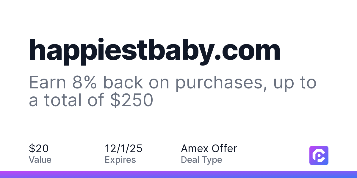 Earn 8% back as a statement credit after using your enrolled eligible Card to make purchases online at happiestbaby.com by 12/1/2025. Limit of $250 back in total statement credits. See terms.