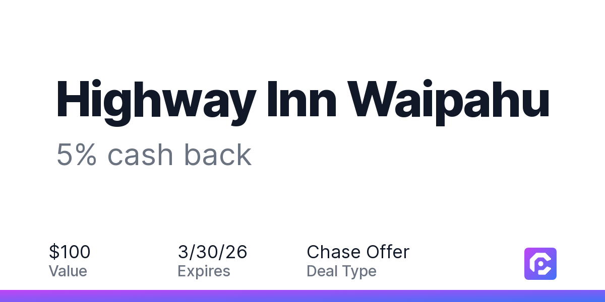 Earn 5% cash back on all of your Highway Inn Waipahu purchases, until a $100.00 cash back maximum is reached.