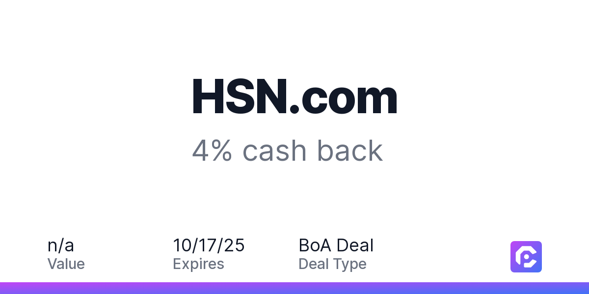 Double Days are valid from 10/6 to 10/17.To qualify, you must access the "Double Days" marked BankAmeriDeals® between 10/6 and 10/17 using the link below to initiate your shopping strip at the HSN.com website. Click through and add eligible item(s) to your cart and check out as you normally would. Cash back awards are calculated only on eligible items purchased and exclude any returns, taxes and shipping on the total order. Please note returning part or all of your order will affect your cash back reward. In most cases, your Double Days cash back will be a single cash back transaction from the merchant on the Earned tab within 30 days of transaction posting date.Remember to make your Double Days purchase in the same session with no limit to your cash back, and you can do this multiple times!SHOP DOUBLE DAYSMerchant specific terms and conditions may apply. See merchant interstitial and transition page for details and exclusions.Payment must be made directly with the merchant.Purchases made using digital wallets, order-ahead apps or delivery services may not qualify where the identity of the merchant is not passed to us as part of the transaction.Please review all of the above terms for eligible locations, time and date restrictions.