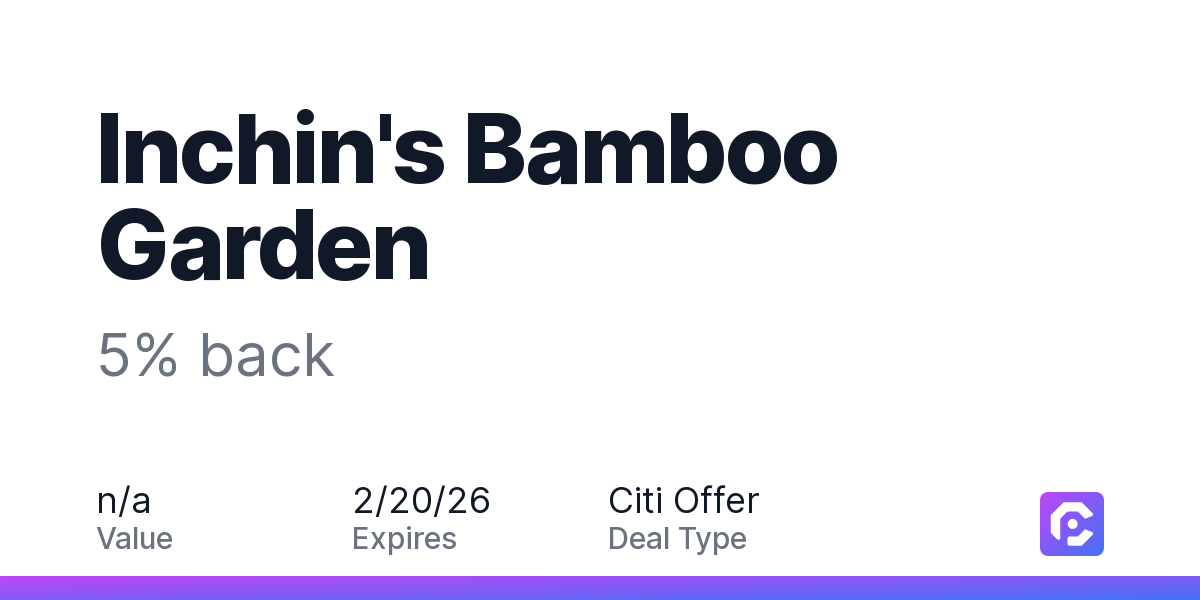 You'll be notified when there are new Inchin's Bamboo Garden offers available.