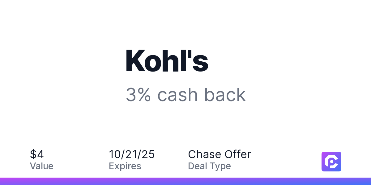 Offer expires 10/21/2025. Offer valid in-store in the US and online at US website kohls.com only. Not valid for online orders shipped outside of the US. Payment must be made directly with the merchant. Offer not valid on purchases made using third-party services, delivery services, or a third-party payment account (e.g., buy now pay later). Payment must be made on or before offer expiration date.