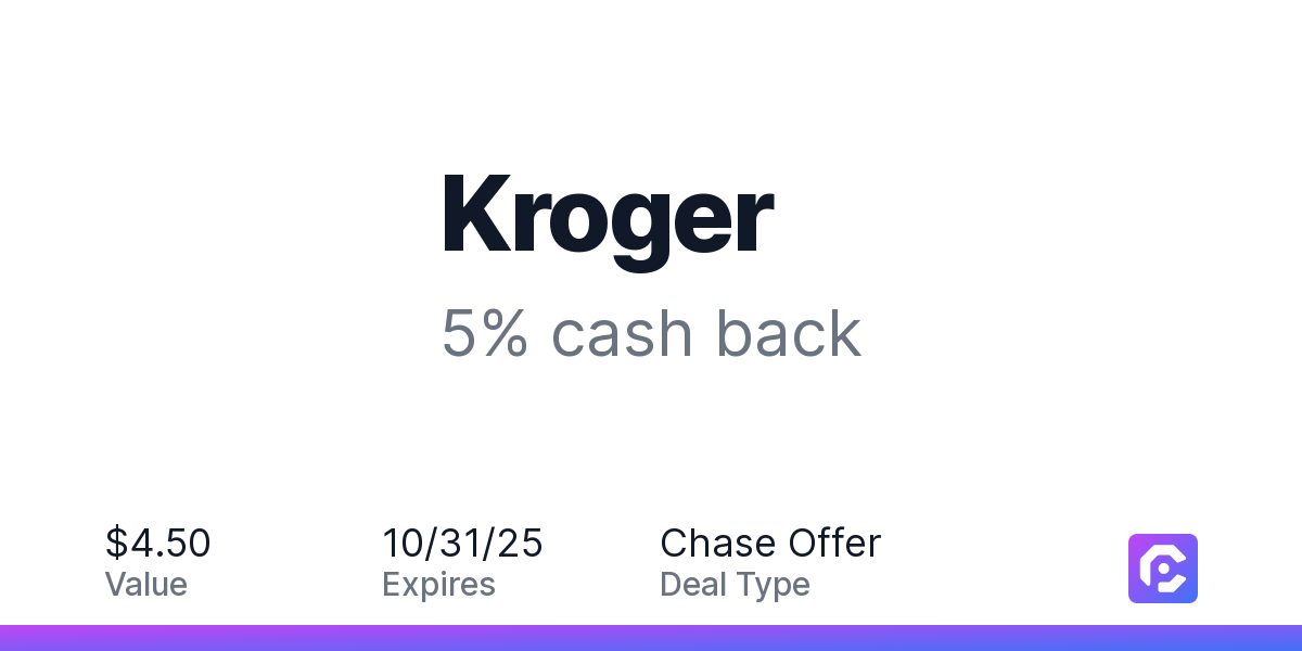 Earn 5% cash back on your Kroger purchase, with a $4.50 cash back maximum.