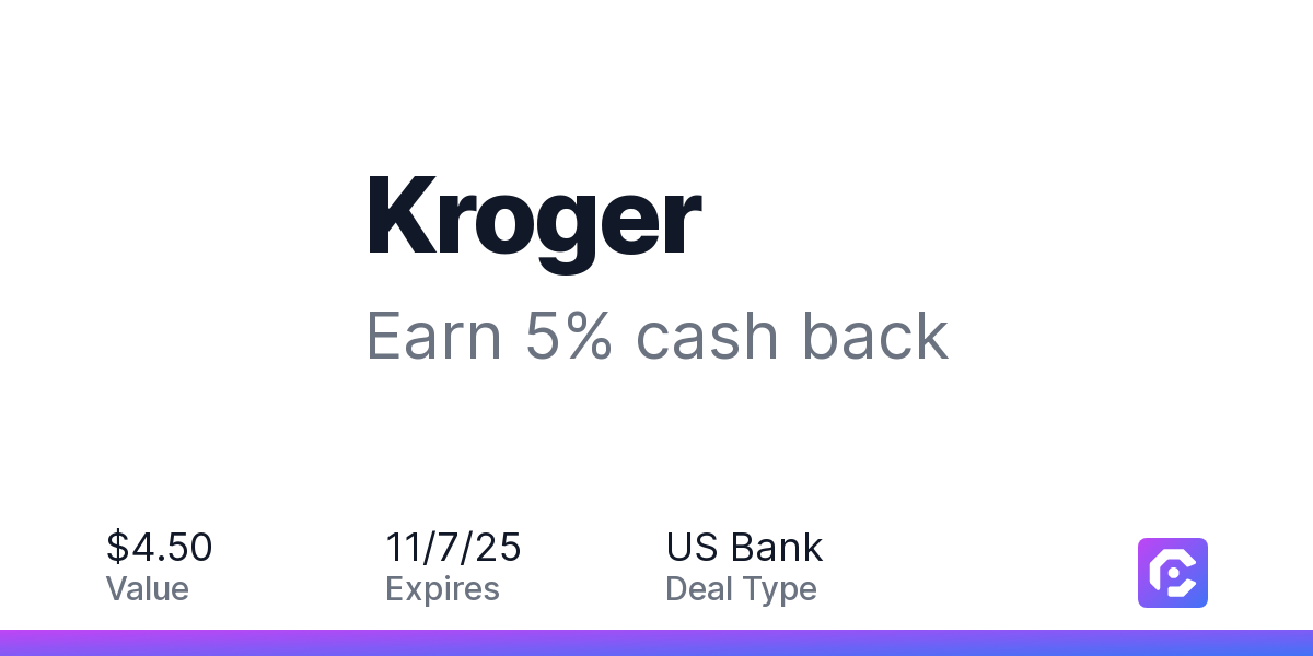 Earn 5% cash back on your Kroger purchase, with a $4.50 cash back maximum.