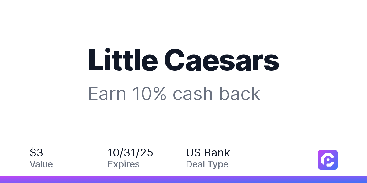 Earn 10% cash back on your Little Caesars purchase, with a $3 cash back maximum.