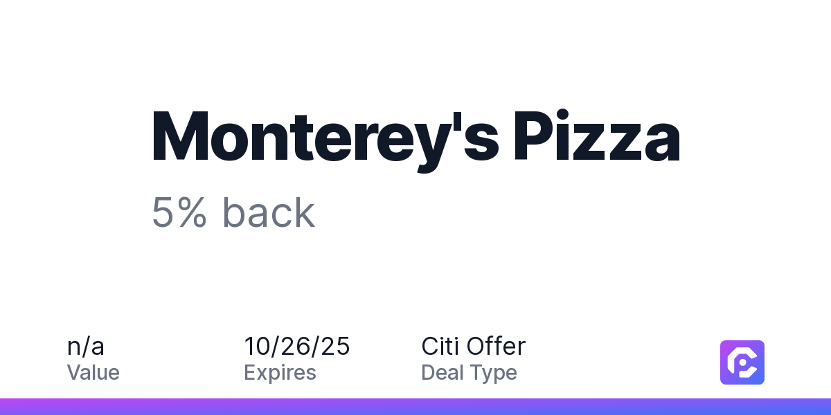 Monterey's Pizza: 5% back