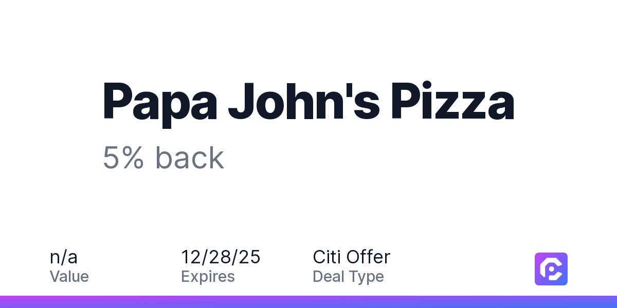 Papa John's Pizza: 5% back