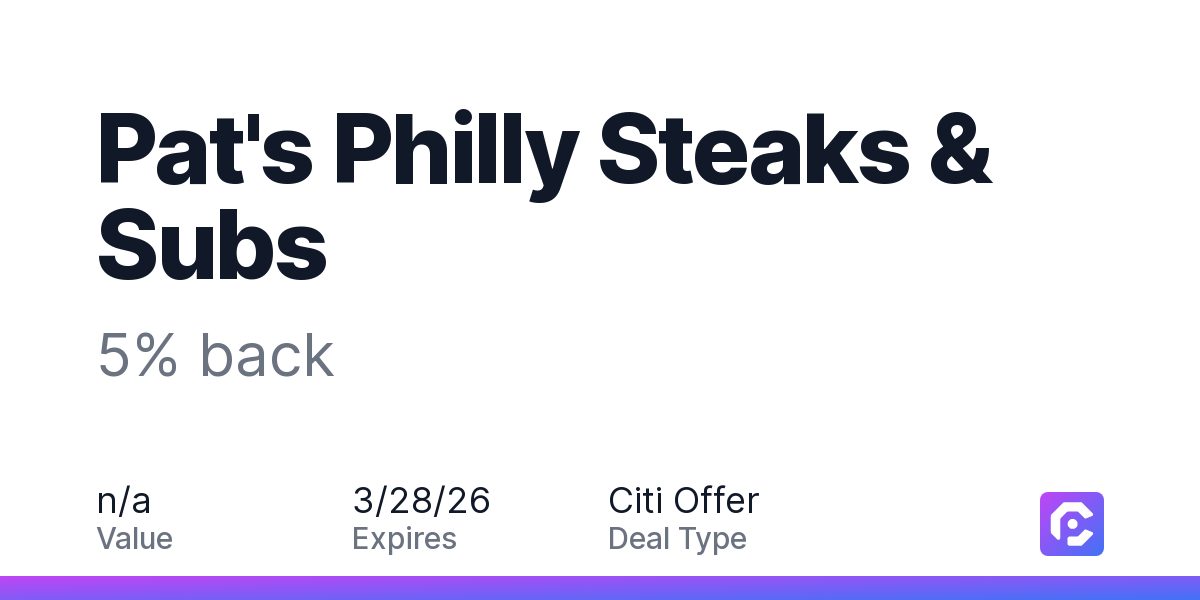 Pat's Philly Steaks & Subs: Earn 5% cash back
