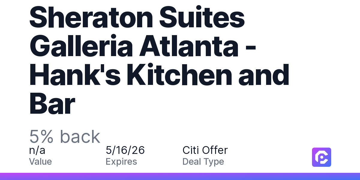 Sheraton Suites Galleria Atlanta - Hank's Kitchen and Bar: 5% back