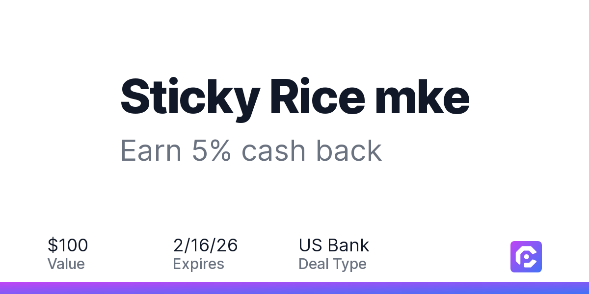Earn 5% cash back on all of your Sticky Rice mke purchases, until a $100 cash back maximum is reached.