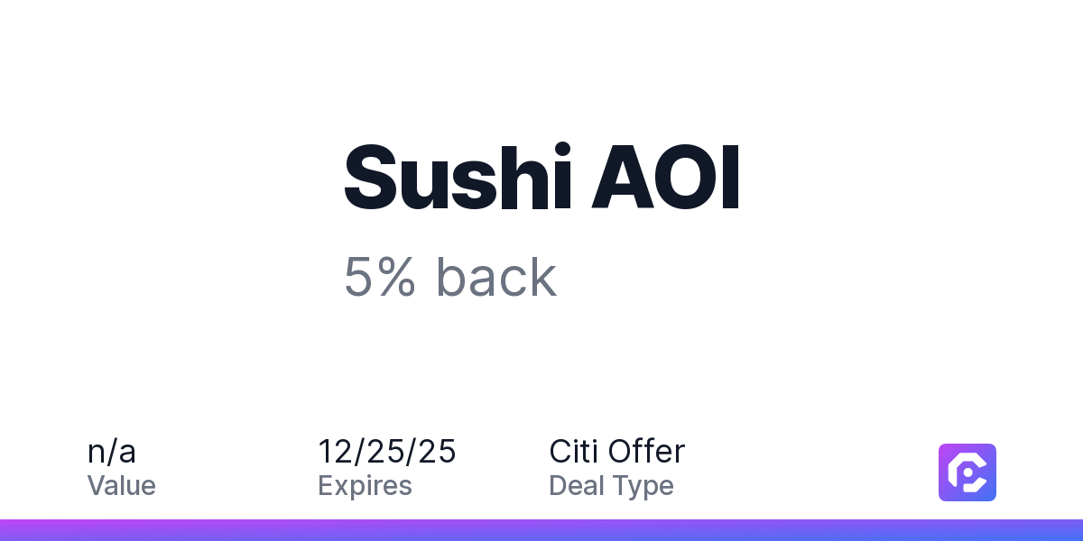 Sushi AOI: 5% cash back