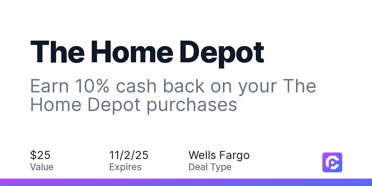 The Home Depot: Earn 10% cash back on your The Home Depot purchases