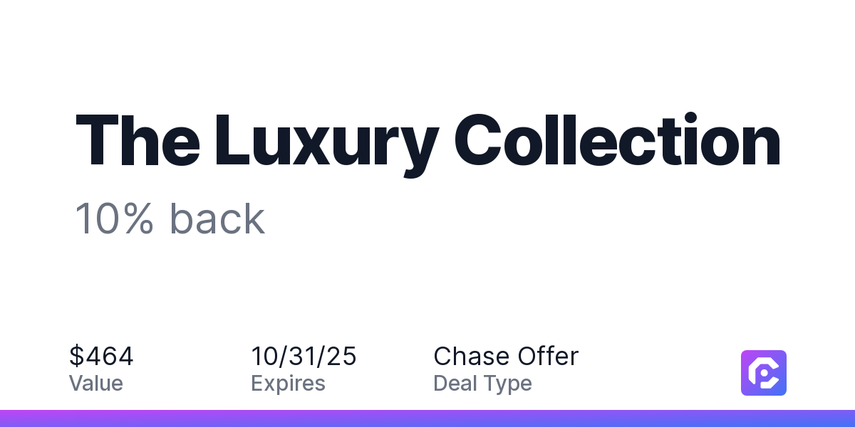 Offer expires 10/31/2025. Offer valid in-store in the US and online at US website luxury-collection.marriott.com. Complete payment for your stay must be made by 10/31/2025. Payment must be made directly with the merchant. Offer not valid on purchase made using third-party service or payment account (e.g. buy now pay later). Payment must be made on or before expiration date. Valid one time only. Offer only valid at The Luxury Collection properties.
