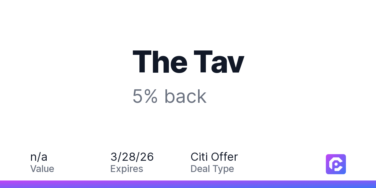 The Tav: 5% cash back