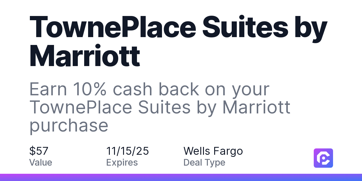 TownePlace Suites by Marriott: Earn 10% cash back on your TownePlace Suites by Marriott purchase