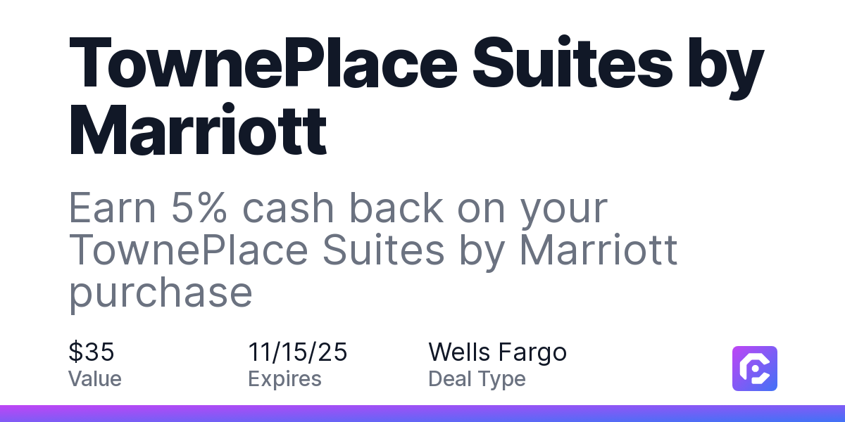 TownePlace Suites by Marriott: Earn 5% cash back on your TownePlace Suites by Marriott purchase
