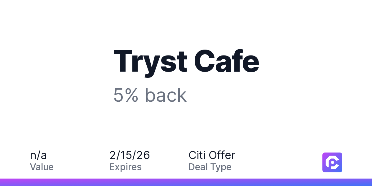 Tryst Cafe: 5% back