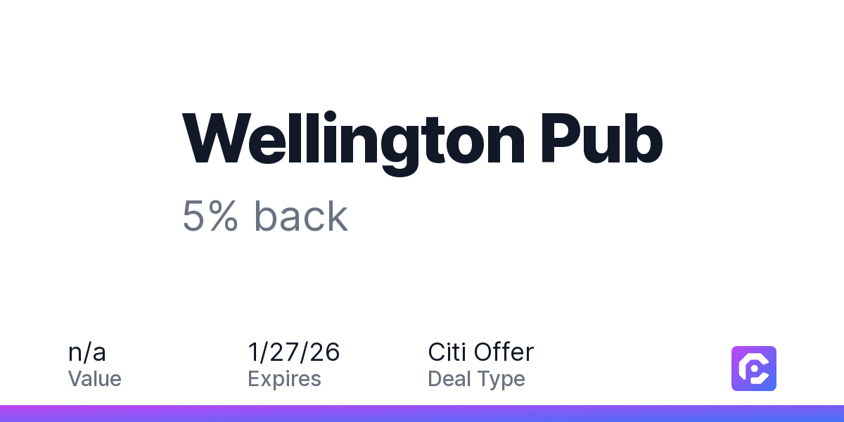 Wellington Pub: 5% back
