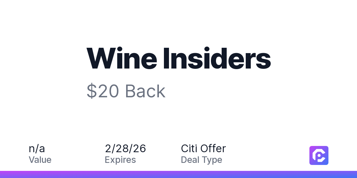 Wine Insiders - Wines delivered to your door: Spend $75 or more, earn $15 back, up to 2 times (total of $30).