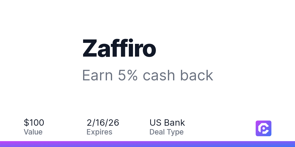 Earn 5% cash back on all of your Zaffiro purchases, until a $100 cash back maximum is reached.